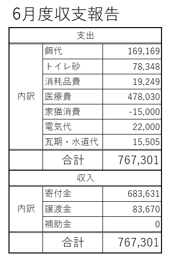 6月の収支報告になります。